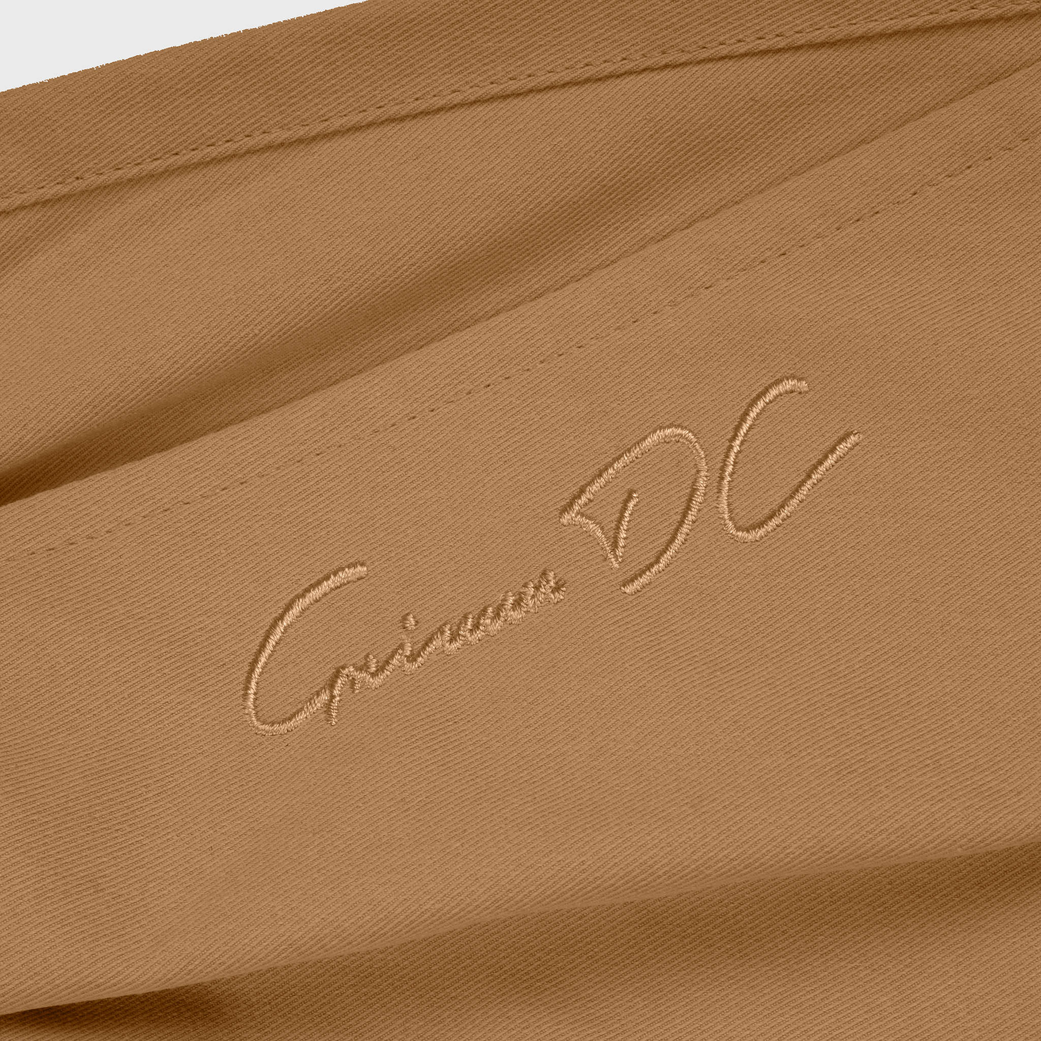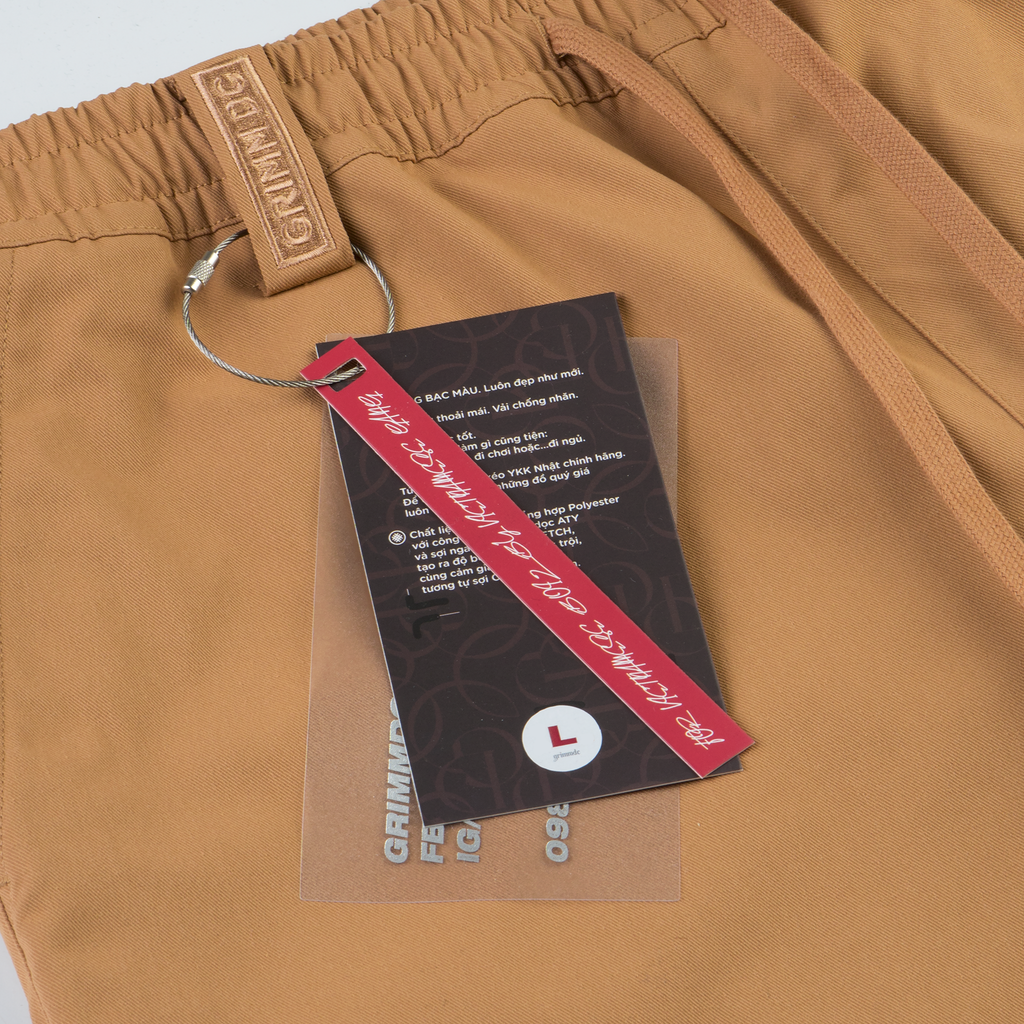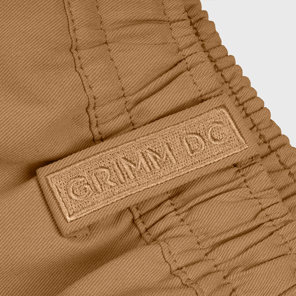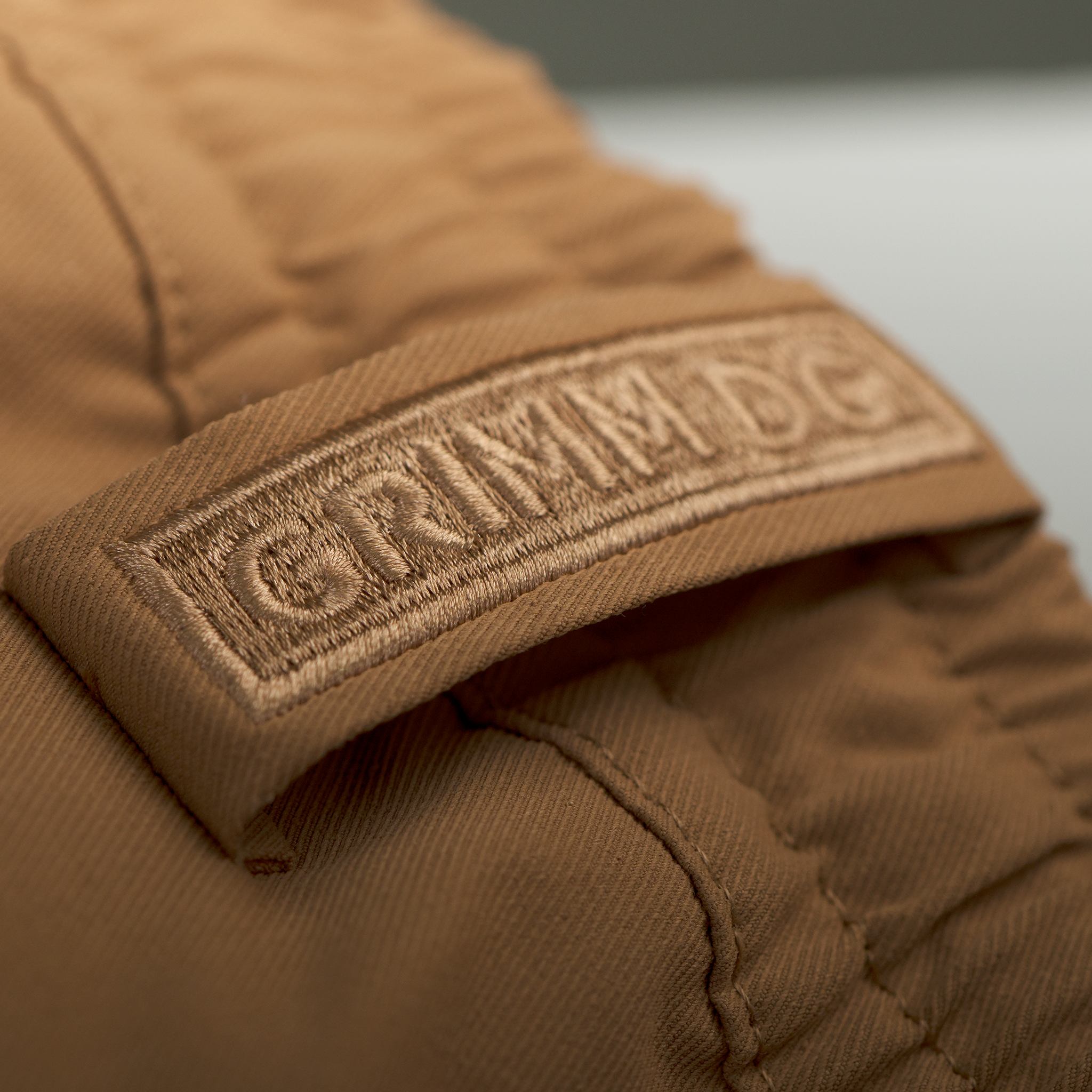 . “Grimm DC” thêu trên miệng túi sau. Bảo chứng cho chất lượng.