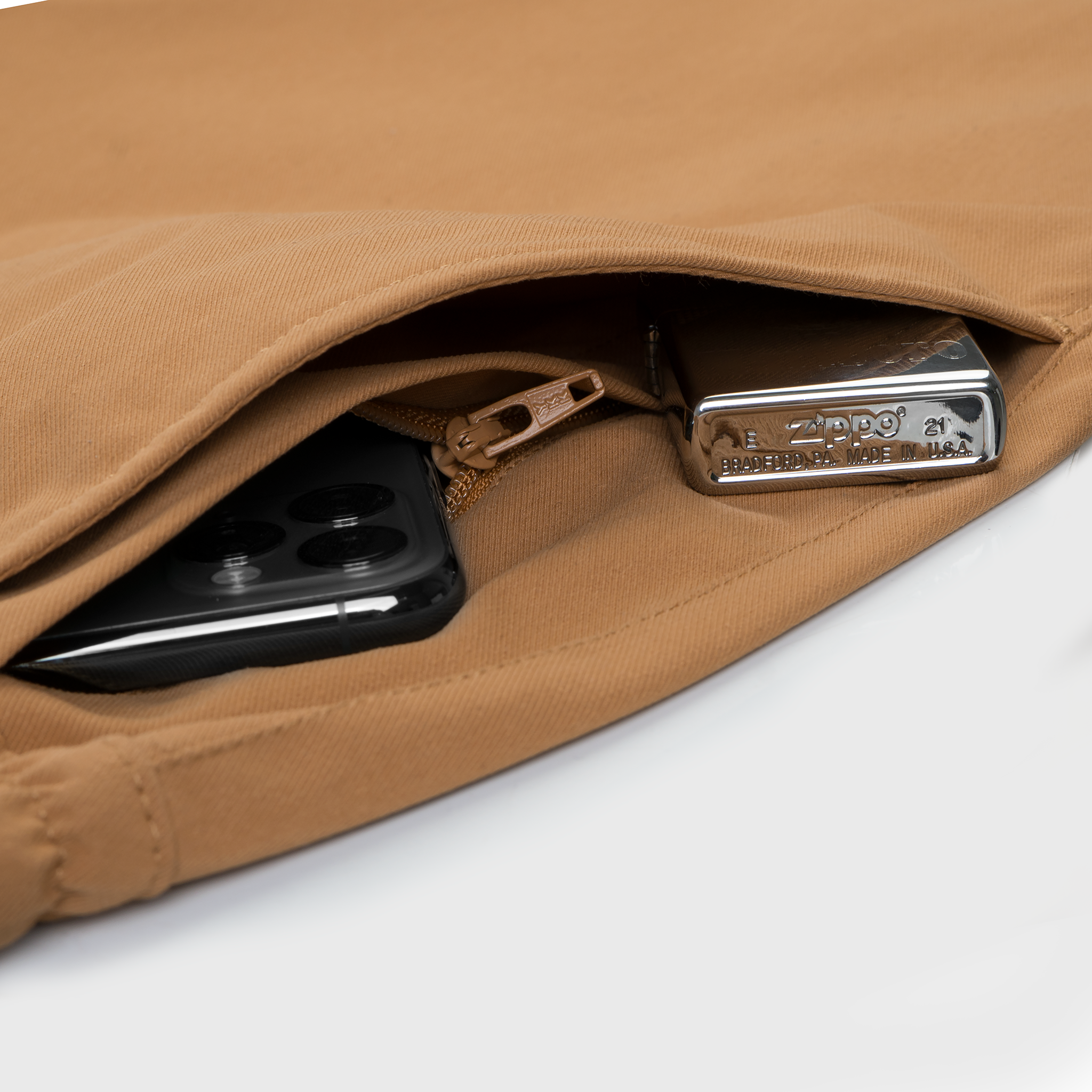 . Quần có 4 túi thường được đánh bọ rất kỹ, kèm túi ẩn với khóa kéo YKK Nhật chính hãng, để điện thoại và những đồ quý giá luôn an toàn.
