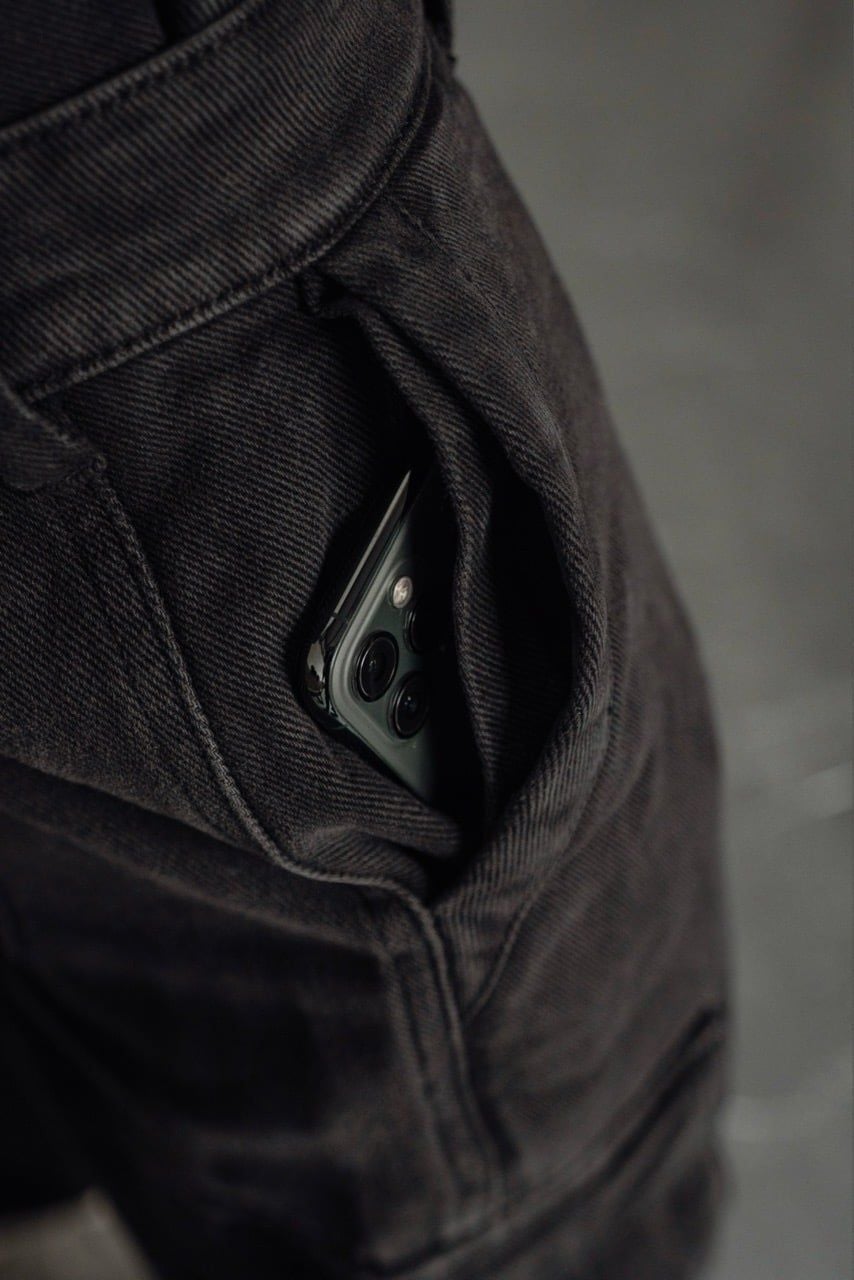. Hệ thống túi: 2 túi chính hai hông, 1 túi ẩn với dây kéo ở hông phải, 2 túi hộp ở đầu gối, 1 túi dao ở cổ chân trái, 1 túi thiết bị ở bắp chân phải, 2 túi sau. Tổng cộng 9 túi.